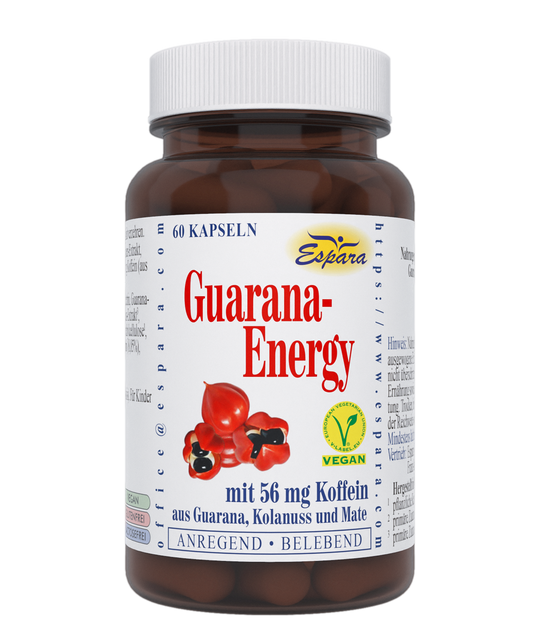Nahrungsergänzungsmittel mit den koffeinhaltigen Pflanzen Guarana, Mate und Kolanuss.Inhalt: 60 Kapseln = 33,0 g (Füllmenge) Verzehr-Empfehlung: 1 mal täglich 1 Kapsel mit Flüssigkeit verzehren. Tagesdosis (1 Kapsel) entspricht: 200 mg Guaranasamen-Extrakt, 200 mg Kolanuss-Extrakt, 50 mg...Regulärer Preis €22,60 -
