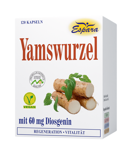 Nahrungsergänzungsmittel mit dem Extrakt der Yamswurzel.Inhalt: 30 Kapseln = 59,2 g (Füllmenge) Verzehr-Empfehlung: 1 mal täglich 1 Kapsel mit Flüssigkeit verzehren. Tagesdosis (1 Kapsel) entspricht: 300 mg Yamswurzel-Extrakt (Dioscorea opposita) (entspricht 6 g Yamswurzel, 60 mg...Regulärer Preis €43,90 -