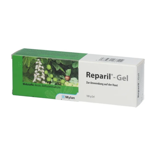 Bei oberflächlichen Venenentzündungen, Krampfadern. Zur Venenpflege nach Injektionen bzw. Infusionen. Bei Verletzungen mit Prellungen, Verstauchungen (Sportverletzungen), Quetschungen, Blutergüssen und Sehnenscheidenentzündungen. Reparil Gel wirkt schmerzstillend und abschwellend, sowie anti-entzündlich und kühlend. Anwendungsgebiete sind Venenbeschwerden, Sportverletzungen wie Prellungen,...Regulärer Preis €15,97Grundpreis €159,70 pro kg -