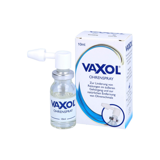 Zur einfachen, sanften Aufweichung und natürlichen Entfernung von Ohrenschmalz! Anwendungshinweise VAXOL® Ohrenspray einfach in den äußeren Gehörgang sprühen.Vorhandenes Ohrenschmalz oder Ohrenschmalzpfropfen werden aufgeweichtVorhandenes Ohrenschmalz oder Ohrenschmalzpfropfen werden aufgeweicht.Das Ohrenschmalz kann auf natürlichem Wege ohne zusätzliches Ausspülen...Regulärer Preis €9,16Grundpreis €91,60 pro 100ml -