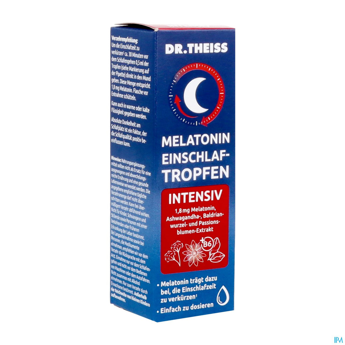 Melatonin Einschlaf/tropfen Intensiv Dr.theiss 20ml ist ein Nahrungsergänzungsmittel, das in Ihrer Apotheke vor Ort oder in einer Online-Apotheke erhältlich ist. Nehmen Sie nicht mehr als die auf der Verpackung angegebene empfohlene Tagesdosis ein. Es ist kein Ersatz für eine gesunde Lebensweise und eine abwechslungsreiche und ausgewogene Ernährung. Fragen Sie Ihren Apotheker um Rat. Bewahren Sie das Produkt immer außerhalb der Reichweite von Kindern auf.