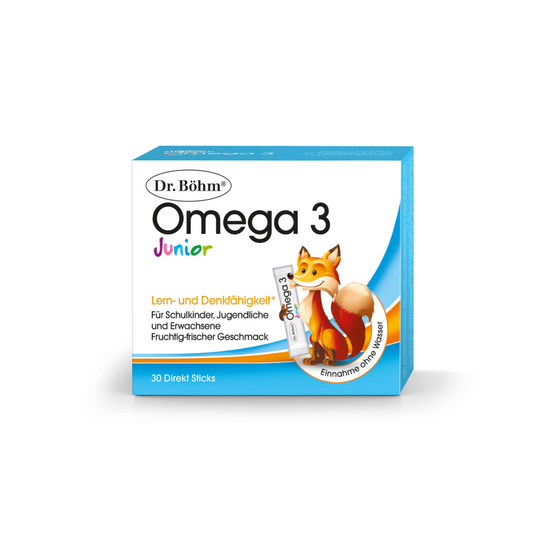Dr. Böhm® Junior Omega 3 Sticks fruchtig-frischer Geschmack für Schulkinder, Jugendliche und Erwachsene für Vegetarier geeignetes Omega 3 Schreiben, Rechnen, Lernen, Denken: All das sind geistige Funktionen, die ein gesundes Gehirn problemlos ausführt. Damit das empfindliche...Regulärer Preis €18,96 -